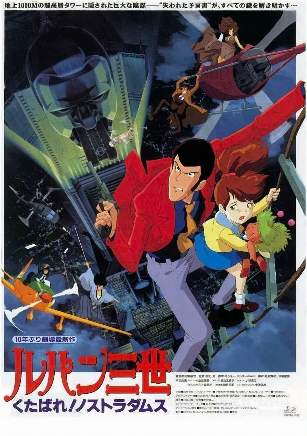 Farewell to Nostradamus (くたばれ!ノストラダムス Kutabare! Nosutoradamusu?) is the 4th Lupin the 3rd movie released on March 31, 1995. It was produced by Tokyo Movie Shinsha and Telecom Animation Film, directed by Shunya Itō and Takeshi Shirato, and written by Hiroshi Kashiwabara and Shunya Itō.